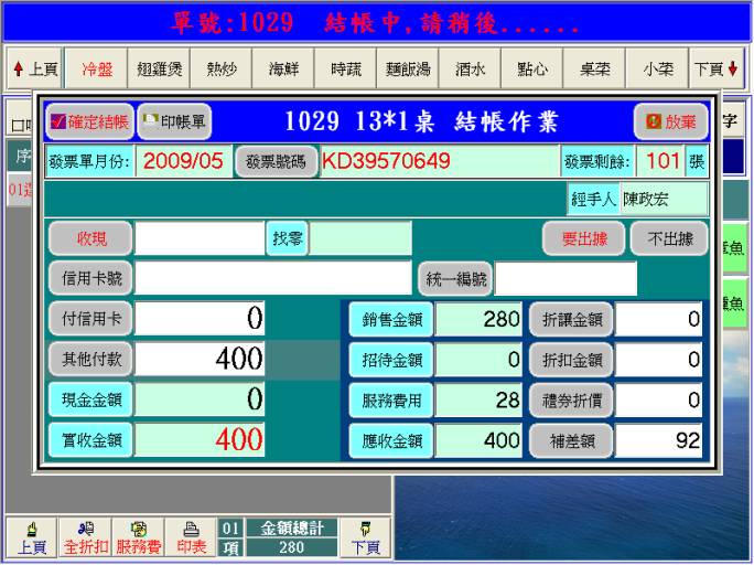 多收消費券操作方式:步驟一:按結帳鍵,藍色現金金額NT$ 308元,如消費券客戶拿2張200元,因消費券不找零錢,帳面上是多收NT$ 92元,先至補差額欄位輸入NT$ 92元,再到其他輸入NT$ 400元,按結帳即可完成交易.